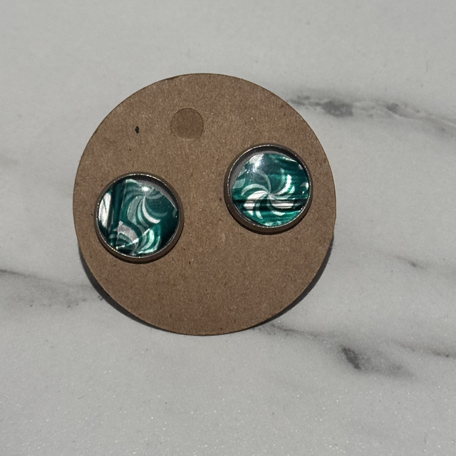 Green an silver stud using hyper allergenic stainless steel made with recycled coffee pods these are unique to owner as only one made