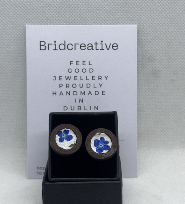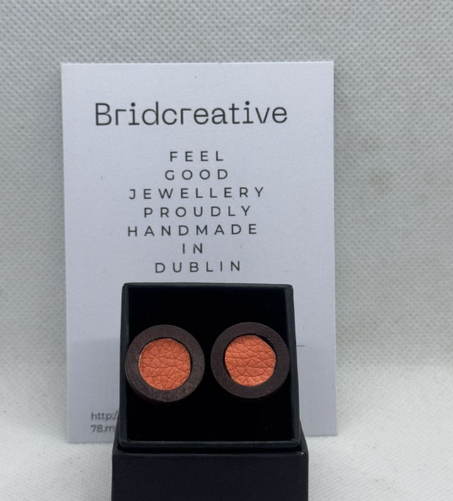 A beautiful blend of natural textures and modern design, these earrings pair smooth wooden studs with soft leather circular cuts for a look that’s effortlessly chic and eco-conscious.